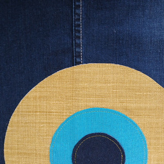 These ideas were then developed further into the Hybrid Styles shirt aesthetic. In my early Hybrid shirts my use of circles was singular, taking one circle and using applique to place it on it's own. I now tend use two to three circles together, which, in some cases, has developed into the "Mod" target or roundel motif, sometimes using the blue, white and red colour combination. The use of squares, rectangles and circles accentuate each others straight and curved edges.